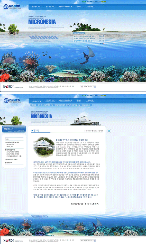 한국해양연구원에서 진행하는 남태평양의 미크로네시아(MICRONESIA) 연구소의 연구실적이 가시화 되면서.. 미크로네시아 홈페이지를 구축하게 되었다.