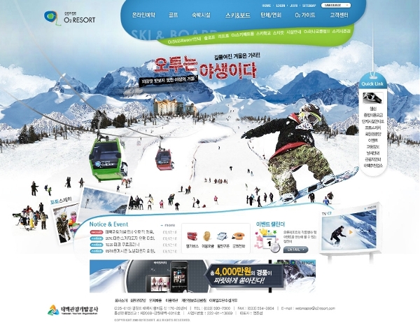 태백관광공사에서 운영하는 국제화를 위한 레저관광단지인 오투리조트(O2resort) 홈페이지 리뉴얼 사업자로 쿤스(유스토리,대표 이민웅)가 선정되었습니다.
