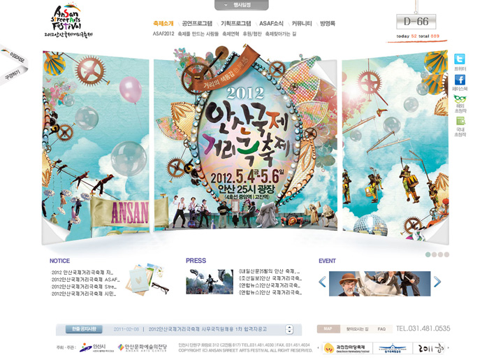 공공 | 안산문화예술의전당 페이지 정보 글쓴이 관리자 작성일2012-02-28 17:32 조회9,135회 댓글0건 이전글 다음글 검색 목록 본문 2012년 안산국제거리극축제가 5월 4일부터 3일간 안산 25시광장에서 펼쳐집니다. 안산의 최대행사중에 하나인 거리극축제를 위한 홈페이지를 쿤스에서 구축하였습니다. 이전글 다음글 검색 목록