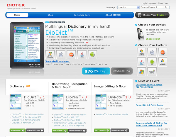 1999년 필기인식기의 대명사 "디오펜"을 시작으로 모바일 전자사전 파워딕 등 앞선 모바일 생활을 위한 다양한 제품 개발에 앞장서온 "디오텍"은 창립 10주년을 맞아 글로벌 기업으로 거듭나기 위해