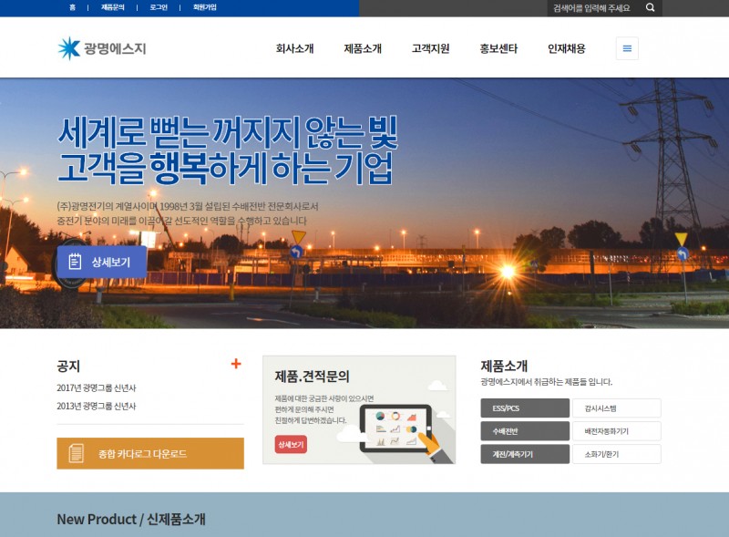 중전기분야의 샛별로 거듭나고 있습니다. 새롭게 태어난 광명에스지는 계열사인 광명전기, 피앤씨테크와의 기술적인 협력을 통해 시너지효과를 극대화시키고, 지속적인 기술혁신과 개척정신으로 중전기분야의 기술을 선도하는 기업입니다.