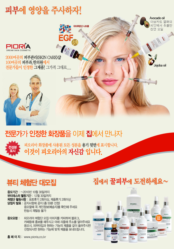 유명 피부관리샵에서 선택한 스킨케어 화장품 브랜드 <피오리아> 를 출시하게 되었습니다.